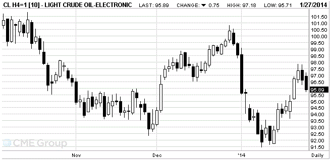 Стоимость мартовских фьючерсов на американскую легкую нефть марки WTI (Light Sweet Crude Oil) упала до $95,89 за баррель на Нью-йоркской товарной бирже (NYMEX).