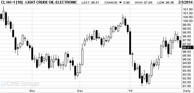 Стоимость мартовских фьючерсов на американскую легкую нефть марки WTI (Light Sweet Crude Oil) упала до $96,32 за баррель на Нью-йоркской товарной бирже (NYMEX).