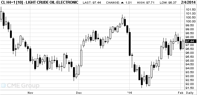 Стоимость мартовских фьючерсов на американскую легкую нефть марки WTI (Light Sweet Crude Oil) выросла до $97,71 за баррель на Нью-йоркской товарной бирже (NYMEX).