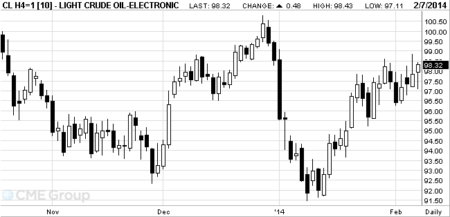 Стоимость мартовских фьючерсов на американскую легкую нефть марки WTI (Light Sweet Crude Oil) выросла до $98,43 за баррель на Нью-йоркской товарной бирже (NYMEX).