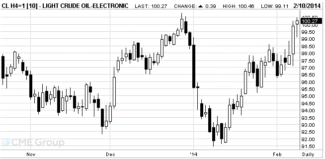 Стоимость мартовских фьючерсов на американскую легкую нефть марки WTI (Light Sweet Crude Oil) выросла до $100,27 за баррель на Нью-йоркской товарной бирже (NYMEX).