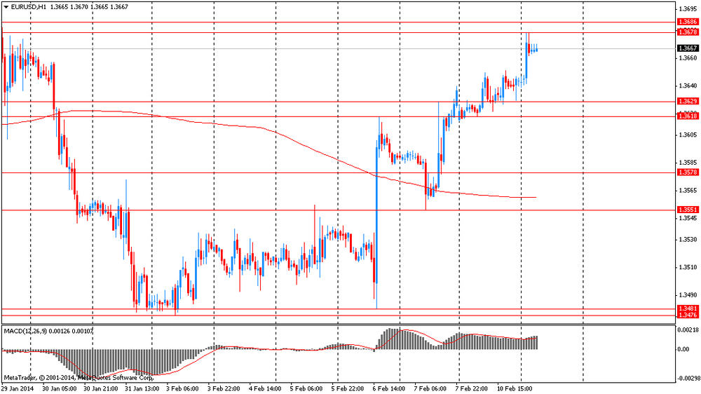 EUR/USD: в ходе азиатской сессии пара выросла к $1.3680
