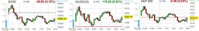 Основные фондовые индексы США завершили торги разнонаправленно. После незначительного роста, основные фондовые индексы пошли вниз. Из глобальных макроэкономических новостей США, пожалуй, стоит выделить публикацию объёма федерального бюджета за январь. Отчет показал, что дефицит федерального бюджета США снизился за прошедшие с начала финансового года месяцы. За октябрь-январь дефицит федерального бюджета составил 184,02 млрд. долларов, что на 37% ниже дефицита в 290,41 млрд. долларов в аналогичном периоде предыдущего финансового года. В январе дефицит был 10,42 млрд. долларов, что оказалось лучше ожиданий экономистов. Отметим, что финансы федерального правительства устойчиво укрепляются. В 2013 г. дефицит снизился ниже 1 трлн. долларов — впервые за пять лет, так как медленного укрепление экономики с повышение налогов увеличили доходы. Дефицит в 680,28 млрд. в 2013 финансовом году более чем на треть меньше дефицита предыдущего года. Бюджетный офис конгресса ожидает, что дефицит за 2014 г. составит 514 млрд. долларов, что станет самым низким дефицитом с 2007 г. Однако это улучшение может оказаться краткосрочным. Если законы не изменятся, дефицит может вновь сократиться в 2015 г. , а далее будет увеличиваться, превысив 1 трлн. долларов в 2022 г.