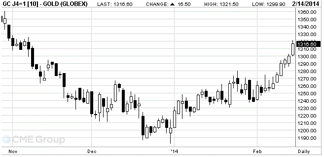 Стоимость апрельского фьючерса на золото на COMEX сегодня выросла до $1316.60 за унцию за унцию.