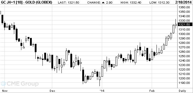 Интерес к золоту, которое считается низкорискованным вложением, повысился, когда инвесторы увидели, что холода в США влияют на экономический рост, а рост Китая замедляется.