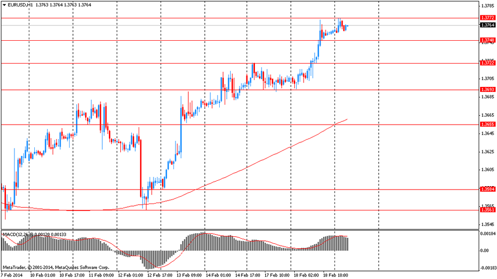 Фунт торгуется вблизи четырехлетних максимумов в ожидании выхода сегодняшней статистки по уровню безработицы в Великобритании. Ожидается, что показатель окажется самым низким с марта 2009 года. Согласно среднему прогнозу экономистов, уровень безработицы в декабре составит 7,1%. Помимо этого, сегодня будут опубликованы протоколы заседаний Банка Англии от 5-6 февраля, когда руководство ЦБ решило сохранить процентную ставку на рекордно низком уровне 0,5%.