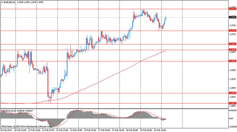 EUR/USD: в ходе азиатской сессии пара выросла к $1.3755