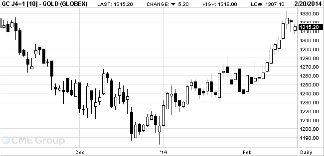 В феврале золото перешло психологически важную отметку $1.300, и во вторник цена поднялась до максимума 3,5 месяцев $1.332,10.