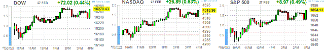 Dow +73.72 16,272.13 +0.46%
