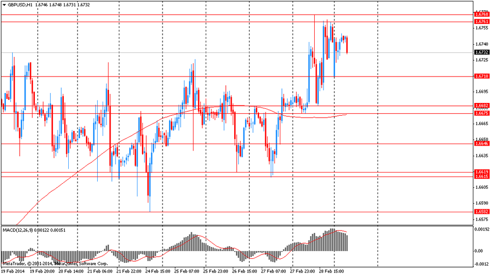 В 08:30 GMT Швейцария опубликует индекс PMI от SVME за февраль. Далее запланирован выход индекса PMI для производственной сферы за февраль: в 08:50 GMT для Франции, в 08:55 GMT для Германии, в 09:00 GMT для Еврозоны, и в 09:30 GMT для Британии. Также в 09:30 GMT Британия объявит о количестве одобренных заявлений на получение ипотечного кредита за январь. В 13:30 GMT Канада представит индекс цен на сырье за январь, а США выпустит основной индекс расходов на личное потребление за январь, и отчитается по изменению уровня расходов населения за январь. В 14:30 GMT Канада опубликует индекс PMI для производственной сферы от RBC за февраль. В 15:00 GMT США выпустит производственный индекс ISM за февраль. В 23:50 GMT Япония объявит об изменении объема денежной базы за февраль.