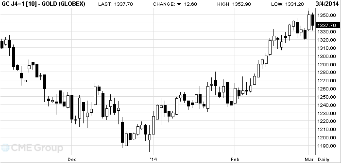 Стоимость апрельского фьючерса на золото на COMEX сегодня упала до $1331.20 за унцию.
