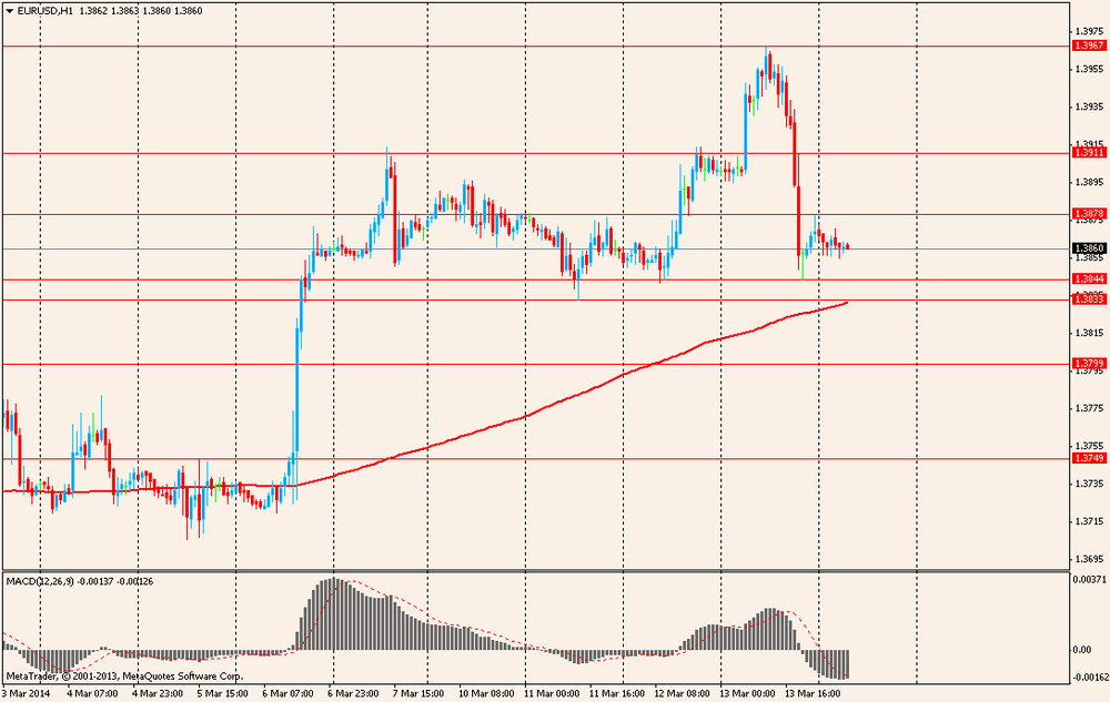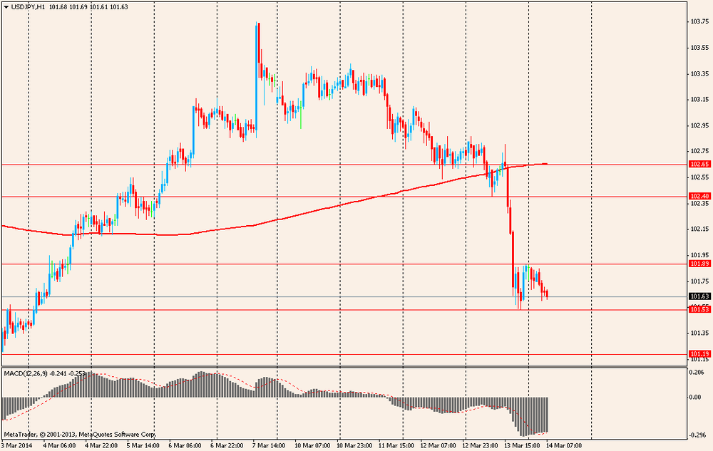 Иена заканчивает неделю крупнейшим ростом за последние 2 месяца из-за подъема спроса на валюты-убежища, вызванного обострением ситуации вокруг проведения референдума по отделению Крыма от Украины. В связи с этим США и Германия усилили свое давление на Россию.
