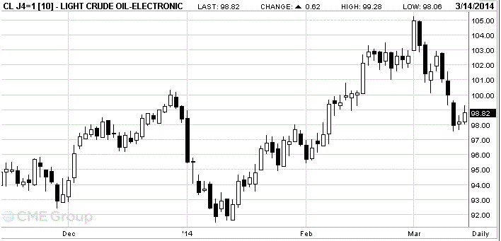 Отметим, что Россия отправила дополнительные войска и технику в Крым в пятницу и повторила свою угрозу вторжения в другие части Украины, не желая слушать западных политиков, которые призывают прекратить агрессию по отношению к Украине. Конфликт оказывает поддержку мировым рынкам нефти, так как трейдеры опасаются, что это может привести к срыву поставок нефти из России - один из крупнейших в мире добытчиков нефти.