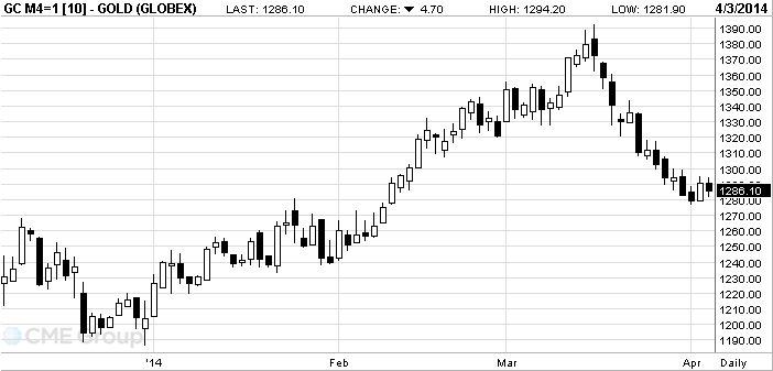 Стоимость июньского фьючерса на золото на COMEX сегодня упала до $1281.90 за унцию.