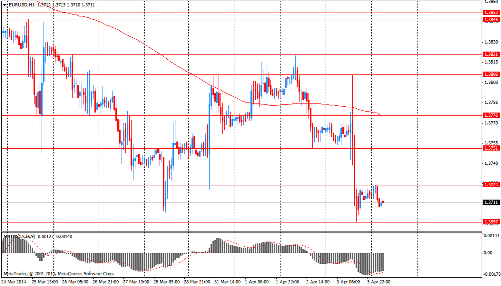 EUR/USD: в ходе азиатской сессии пара упала к $1.3710