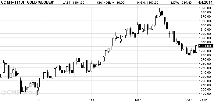 Стоимость июньского фьючерса на золото на COMEX сегодня выросла до $1303.50 за унцию.