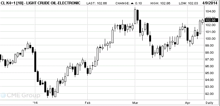 Стоимость майских фьючерсов на американскую легкую нефть марки WTI (Light Sweet Crude Oil) выросла до $102,66 за баррель на Нью-йоркской товарной бирже (NYMEX).