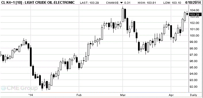 Стоимость майских фьючерсов на американскую легкую нефть марки WTI (Light Sweet Crude Oil) упала до $103,29 за баррель на Нью-йоркской товарной бирже (NYMEX).