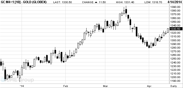 Стоимость июньского фьючерса на золото на COMEX сегодня выросла до $1331.40 за унцию.