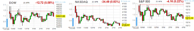 После открытия рынка стал известен предварительный индекс деловой активности в производственном секторе США за апрель. Так, индекс продемонстрировал незначительное замедление темпов расширения. Отчет показал, что данный индекс снизился до 55,4 с 55,5 (окончательное чтение за март), по сравнению с прогнозами роста на уровне 56,2 пункта.