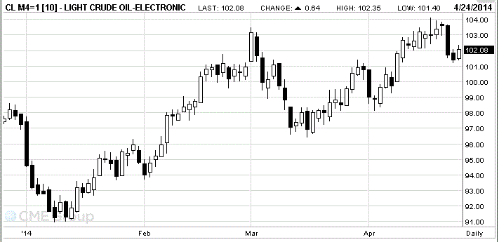 Стоимость июньских фьючерсов на американскую легкую нефть марки WTI (Light Sweet Crude Oil) выросла до $102,08 за баррель на Нью-йоркской товарной бирже (NYMEX).