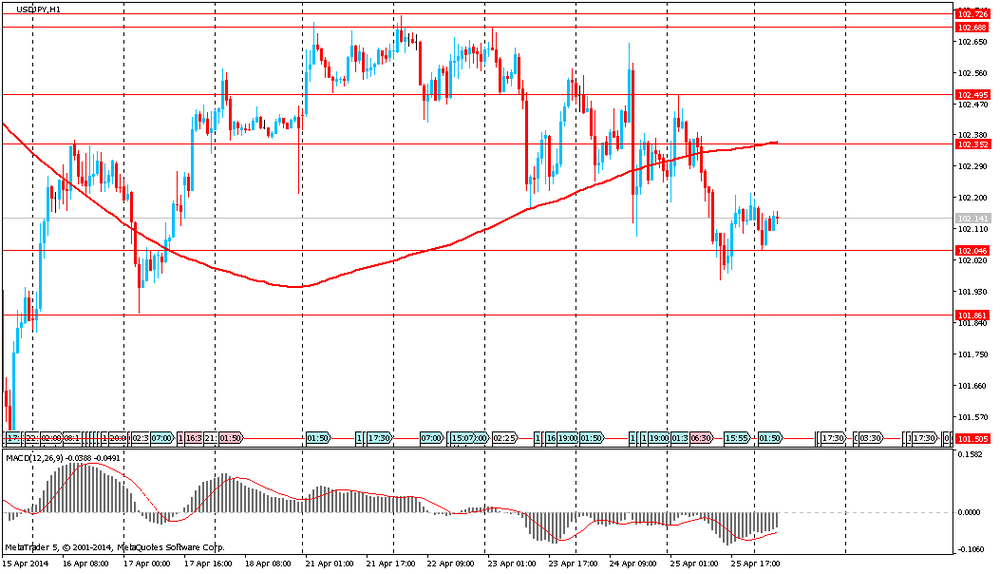 Спрос на иену был ограничен в ожидании результатов заседаний Банка Японии и Федеральной резервной системы, которые состоятся на этой неделе. Первым, 29-30 апреля, проведет свое заседание руководство ФРС. Экономисты ожидают, что Центральный банк вновь сократит ежемесячные покупки активов на $10 млрд. до $45 млрд. Вероятно, что Федеральній резерв продолжит сокращение и полностью завершит программу QE к октябрю. Вторым (30 апреля) будет заседать ЦБ Японии. Более 70% экономистов считают, что Банк Японии к июлю этого года будет вынужден увеличить стимулирующие монетарные программы. Помимо этого, аналитики ожидают от ЦБ обновленных прогнозов по инфляции и экономическому росту в стране.