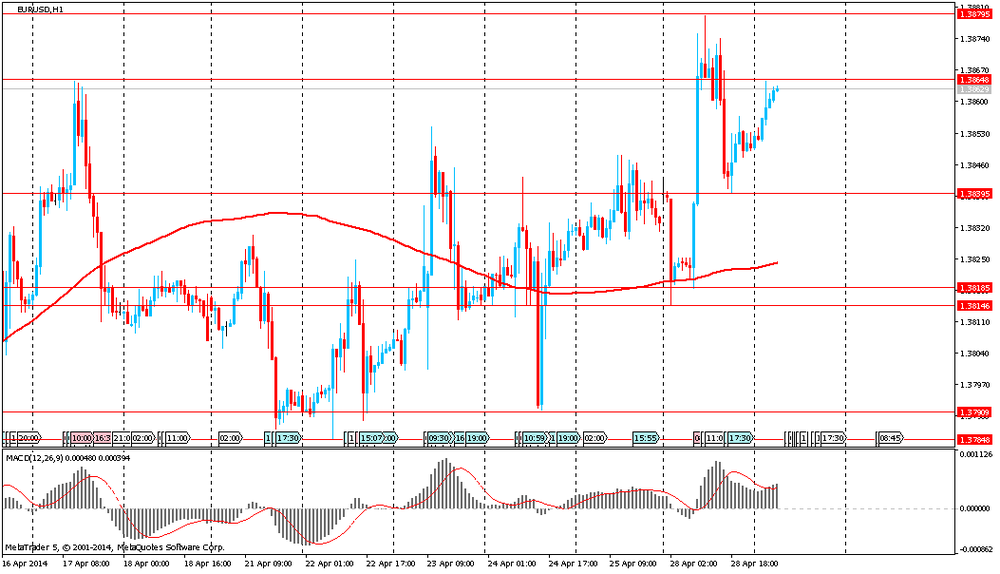 EUR/USD: в ходе азиатской сессии пара выросла к $1.3865