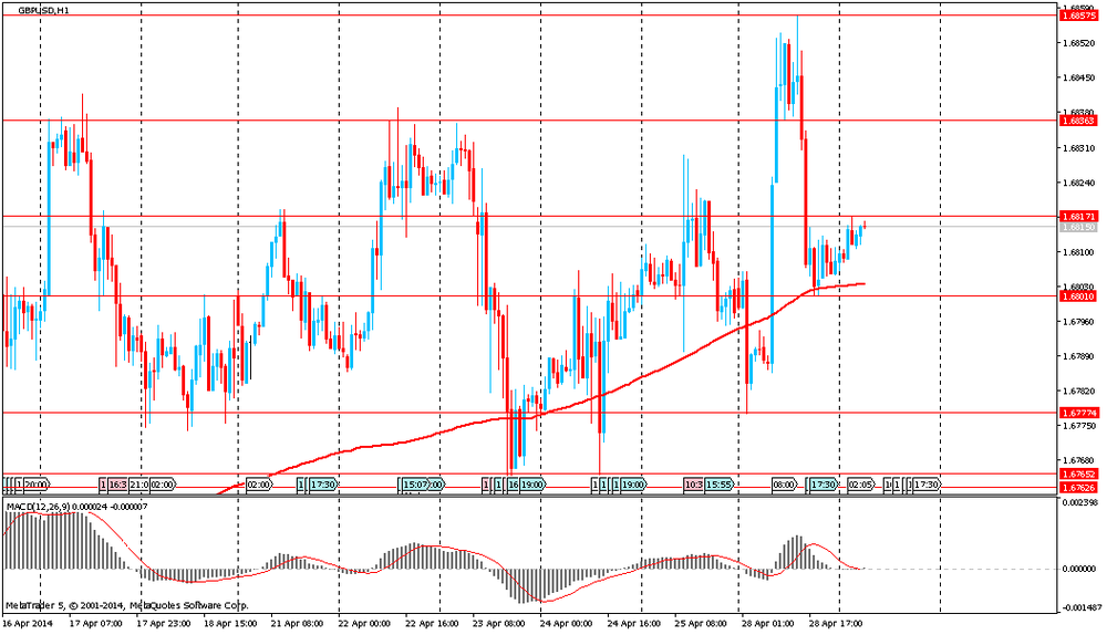 Фунт торговался около четырехлетнего максимума против доллара в преддверии сегодняшней публикации предварительных данных по росту экономики Великобритании. Согласно среднему прогнозу экономистов, объем внутреннего валового продукта в первом квартале, вероятно, вырастет на 0,9% по сравнению с предыдущим трехмесячным периодом. Если прогноз подтвердится - это будет самое быстрое ускорение показателя со второго квартала 2010 года.
