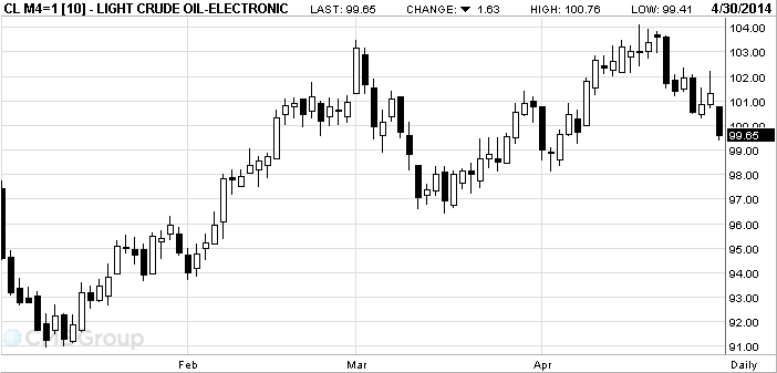 Стоимость WTI также упала, так как экономический рост в США замедлился в первом квартале. Рост ВВП США в 1-м квартале замедлился до одних из самых низких темпов за пять лет восстановления экономики, так как холодная зима, похоже, сдержала инвестиции компаний, а слабость зарубежных экономик навредила экспорту. Как сообщило в среду Министерство торговли, ВВП – наиболее широкий индикатор товаров и услуг, производящихся в экономике, - в 1-м квартале с учетом коррекции на сезонные колебания вырос на 0,1% годовых. Экономисты прогнозировали рост ВВП на 1,1% годовых.