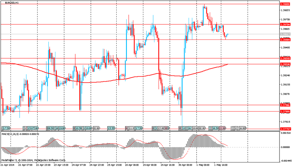 Дополнительно сегодня будет представлен официальный отчет от министерства труда США по безработице. Ожидается, что в предыдущем месяце американская экономика создала 211 тыс рабочих мест, по сравнению с 192 тыс в марте. Напомним, вчера департамент труда США заявил: число людей, обратившихся за пособием по безработице, выросло на 14 тыс. до девятинедельного максимума и составило 344 тыс.. Увеличение было неожиданным. Экономисты предполагали, что в течение семи дней, завершившихся 26 апреля, показатель сократится до 320 тыс. с учетом сезонных колебаний.