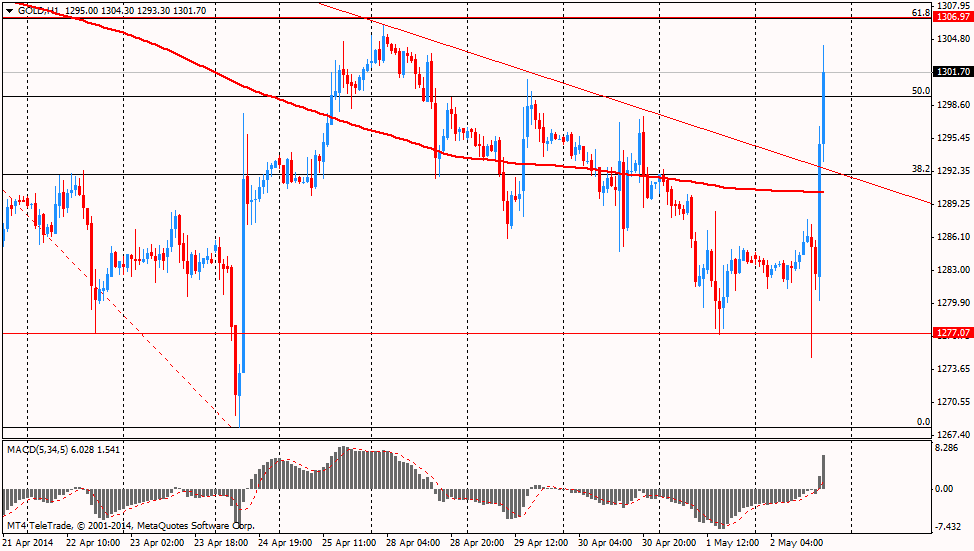 Однако, позже цены на золото начали повышаться, что, вполне возможно, было обосновано ростом опасений участников рынка относительно обострения ситуации на Украине, где правительство проводит антитеррористическую операцию на Востоке страны. Инвесторы опасаются эскалации конфликта между Украиной и Россией, что влечет за собой повышение спроса на относительно безопасные активы.