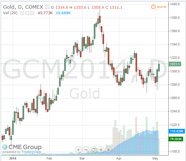 На текущий момент стоимость июньского фьючерса на золото на COMEX выросла до уровня $1311.10.