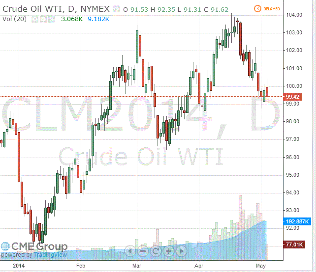 Стоимость июньских фьючерсов на американскую легкую нефть марки WTI (Light Sweet Crude Oil) снизилась до $99,42 за баррель на Нью-йоркской товарной бирже (NYMEX).