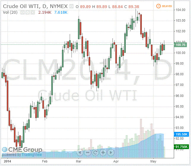 Стоимость июньских фьючерсов на американскую легкую нефть марки WTI (Light Sweet Crude Oil) выросла до $100,76 за баррель на Нью-йоркской товарной бирже (NYMEX).
