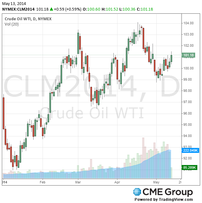 Стоимость июньских фьючерсов на американскую легкую нефть марки WTI (Light Sweet Crude Oil) выросла до $101,52 за баррель на Нью-йоркской товарной бирже (NYMEX).