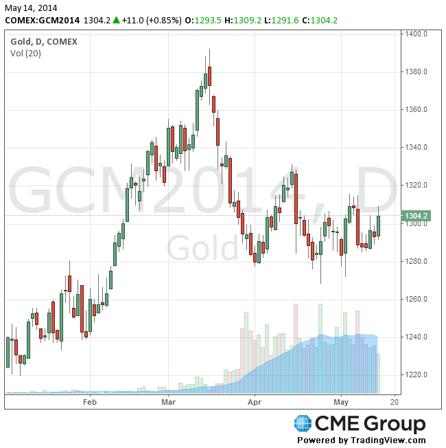 В последние месяцы конфликт между Россией и Украиной оказывал поддержку ценам на золото, поскольку опасения по поводу потенциального обострения ситуации заставили некоторых инвесторов искать убежища на рынках драгоценных металлов. Тем не менее, отсутствие заметной эскалации политической напряженности удерживало цены на золото в диапазоне шириной 60 долларов с конца марта. Котировки фьючерсов колеблются от максимумов на уровне 1331 доллара до минимумов в районе 1268 долларов.