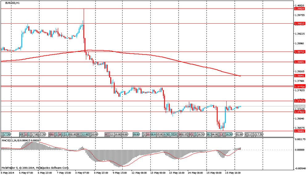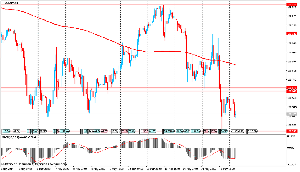 Также падению американской валюты против иены способствовали опубликованные негативные данные по инфляции и рынку труда в США. В апреле индекс потребительских цен вырос на 0,3%, это был самый сильный прирост с июня. Цены на энергоносители выросли на 0,3% и цены на продовольствие поднялись на 0,4%. В свою очередь, число обращений за пособием по безработице в США снизилось на 24 тысячи до 297 тысяч за неделю, завершившуюся 10 мая. Это меньше, чем прогнозировали экономисты. Согласно средней оценке экспертов, показатель должен был составить 320 тысяч.