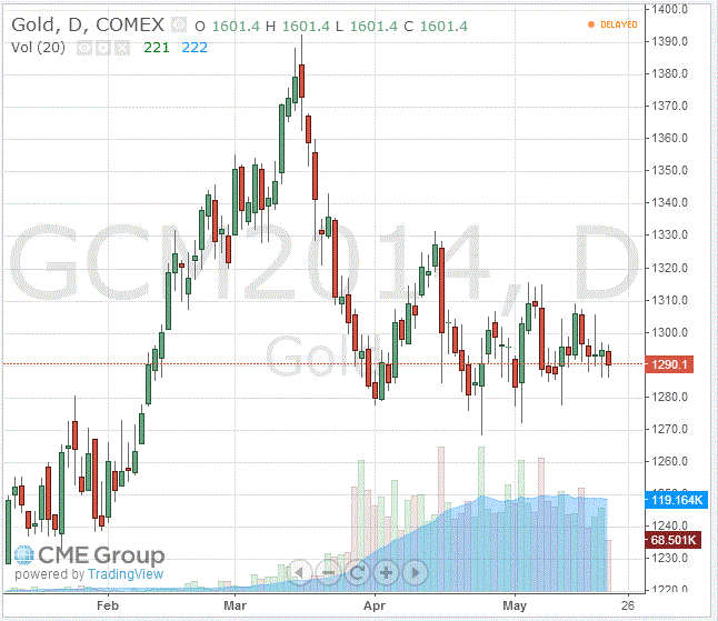 «В течение последних нескольких недель золото колеблется в диапазоне», сказал аналитик Mitsubishi Corp Джонатан Батлер. «Мы видели случайные всплески, когда поступали свежие новости из России, но геополитический фактор риска уже в значительной степени заложен в цене. Отсутствие новостей об экономике США и ситуации в Украине не позволяет трейдерам открывать новые позиции».