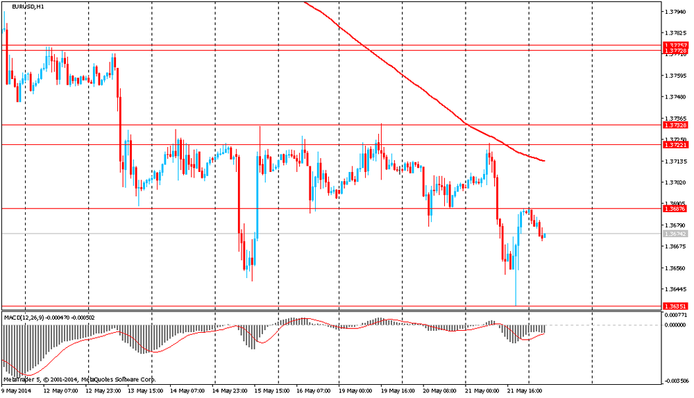 EUR/USD: в ходе азиатской сессии пара упала к $1.3670