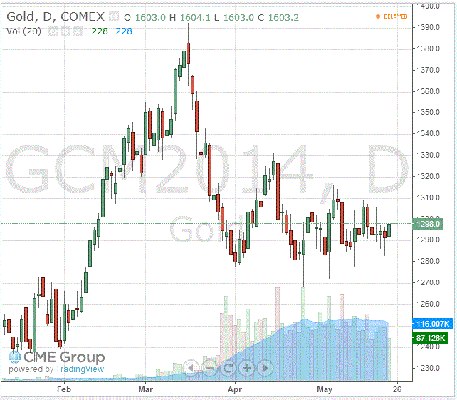 Стоимость июньского фьючерса на золото на COMEX сегодня выросли до уровня $1298.00.