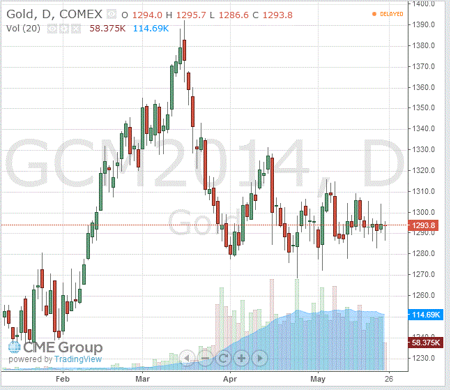 Стоимость июньского фьючерса на золото на COMEX сегодня упала до уровня $1293.80.