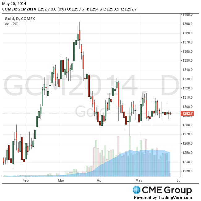 Активы SPDR Gold Trust, крупнейшего биржевого фонда золота, 23 мая не изменились, а 21 мая сократились до 776,89 тонны, или до минимального уровня с декабря 2008 года. В Китае объем торгов индикативными контрактами с немедленной доставкой на Шанхайской бирже уменьшился 23 мая до 9907 килограммов золота, или минимума с 30 апреля.
