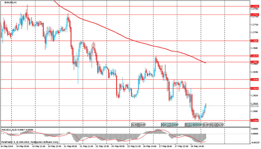 Дополнительное давление на курс единой валюты оказывает ожидание завтрашнего выступления члена управляющего совета ЕЦБ Карлоса Коста. Напомним, вчера член исполнительного совета ЦБ Ив Мерш дал понять, что Европейский ЦБ готов действовать на июньском заседании. "Совет управляющих ЕЦБ готов действовать как с помощью традиционных, так и нетрадиционных мер", - заявил И.Мерш в Токио, где он посетил международную конференцию, проведенную Банком Японии. Это мнение "единогласно" разделяют все 23 члена совета управляющих, отметил он. Напомним, что ЕЦБ проведет свое следующее заседание 5 июня.