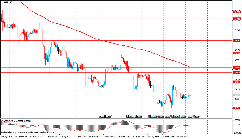 В 06:00 GMT Германия отчитается по изменению объема розничной торговли за апрель. В 07:00 GMT в Швейцарии выйдет индекс ведущих экономических индикаторов от KOF за май. В 12:30 GMT Канада объявит об изменении объема ВВП за март и представит индекс цен на сырье за апрель, а США выпустит данные по личным доходам и расходам за апрель и опубликует базовый индекс цен расходов на личное потребление за апрель. В 13:45 GMT в США выйдет индекс менеджеров по закупкам Чикаго за май, а в 13:55 GMT будет представлен индекс потребительских настроений от Reuters/Michigan за май. В 21:00 GMT c речью выступит член Комитета по открытым рынкам ФРС Ч. Плоссер.