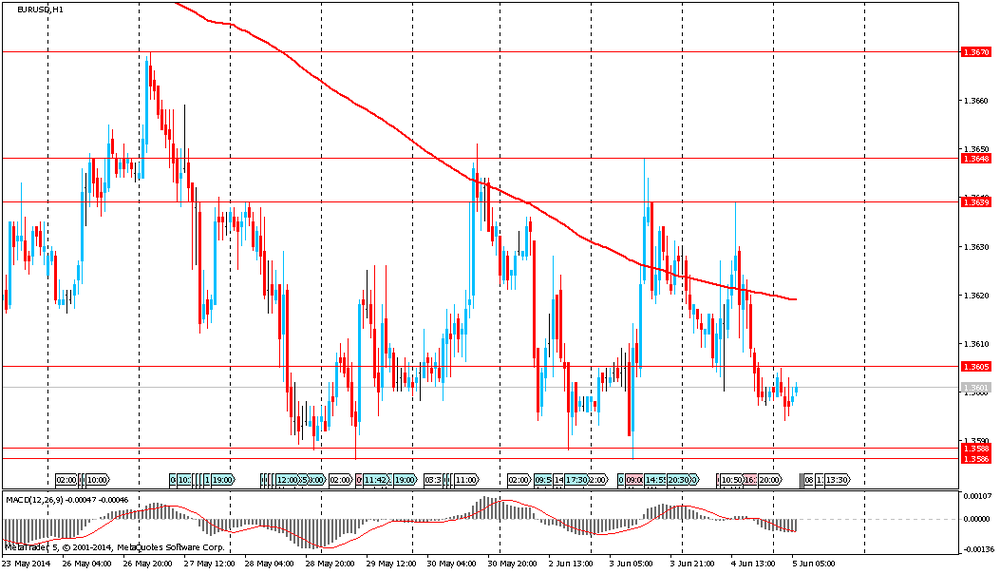 Доллар вырос против иены после вчерашней публикации данных по США, показавших, что индекс деловой активности в сфере услуг США вырос в мае 2014 года до 56,3 пункта - максимального уровня с августа 2013 года, по сравнению с 55,2 пункта в апреле. Эксперты ожидали повышения показателя до 55,6 пункта. Превышение индексом отметки в 50 пунктов свидетельствует о росте деловой активности в сфере услуг, тогда как значение индекса менее 50 пунктов говорит о ее снижении. Помимо этого, 6 июня будут опубликованы официальные данные Министерства труда, которые, по мнению аналитиков, составят рост числа занятых на 219 тыс. Стоит отметить, данное значение чуть выше среднего показателя за год.