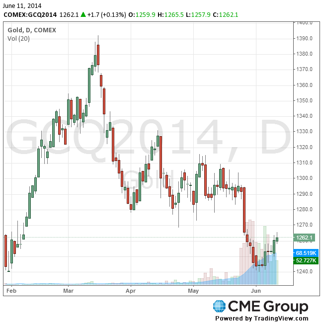 Стоимость августовского фьючерса на золото на COMEX сегодня выросла до $1265.5 за унцию.