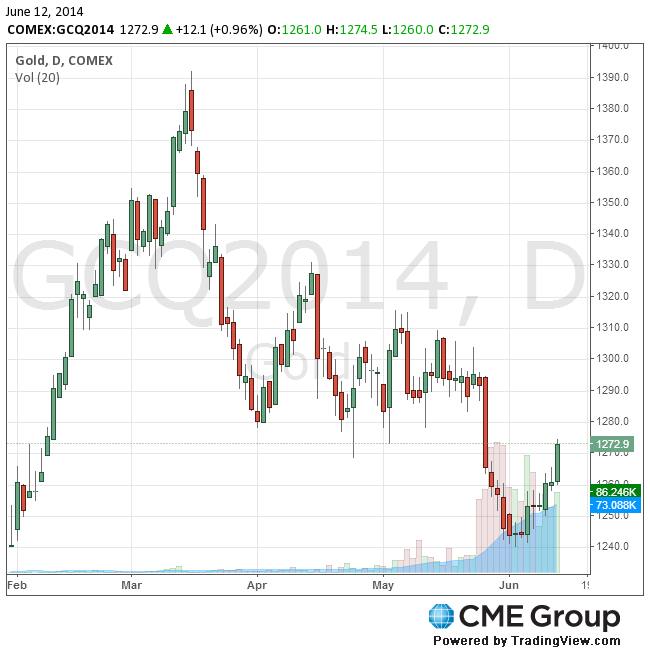 Стоимость августовского фьючерса на золото на COMEX сегодня выросла до $1274.5 за унцию.
