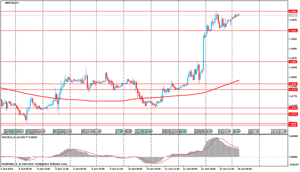 Также сегодня будут представлены данные по промышленному производству в США, которые, согласно прогнозам экспертов, вырастут в мае на 0,5% после падения на 0,6% в предыдущем месяце. Помимо этого, выйдет индекс активности в производственном секторе от ФРБ Нью-Йорка. Ожидается, что показатель в этом месяце снизится к отметке 15.2, против 19.0 в мае.