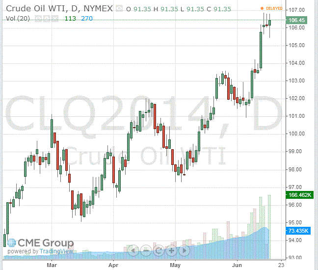 Стоимость августовских фьючерсов на американскую легкую нефть марки WTI (Light Sweet Crude Oil) выросла до $106,45 за баррель на Нью-йоркской товарной бирже (NYMEX).