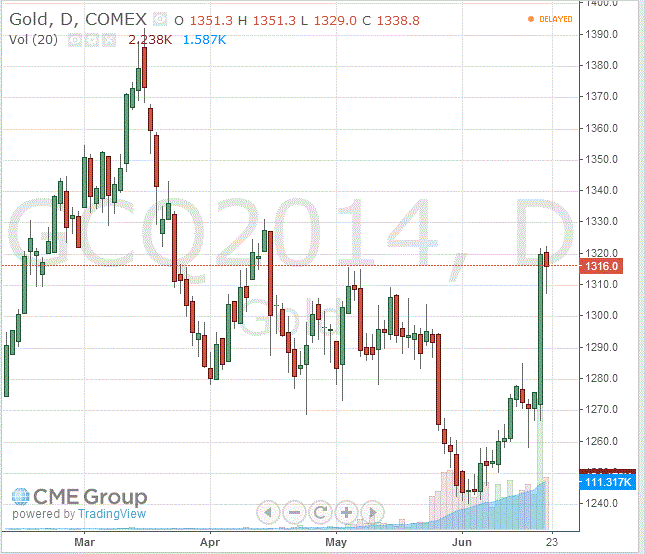 Также спрос на драгоценный металл в качестве безопасного актива поднялся, поскольку бои иракской армии с суннитскими боевиками-исламистами все еще продолжаются в пятницу.